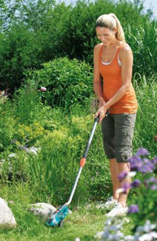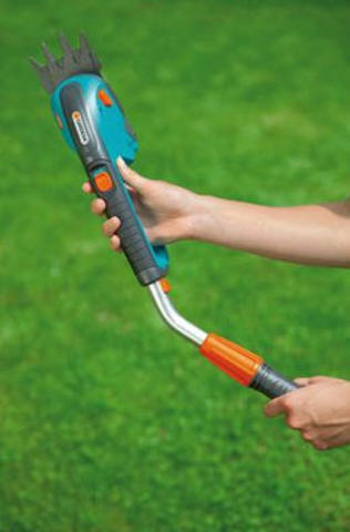Комплект аккумуляторных газонных ножниц GARDENA ClassicCut дает возможность с удобством подстригать кромки газонов, не подключая устройство к электросети — и не наклоняясь. В комплект специального предложения входит телескопическая поворотная рукоятка, позволяющая подстригать газон стоя. Колесики обеспечивают легкое перемещение по траве. Мощная, простая в обслуживании литий-ионная аккумуляторная батарея гарантирует легкость работы и прекрасную производительность. Светодиодный дисплей постоянно показывает уровень заряда аккумулятора и позволяет оценить оставшееся время работы, а также вовремя сигнализирует о необходимости подзарядки. Съемные ножи прецизионной заточки имеют покрытие от налипания. Ножи заменяются без помощи инструментов — невероятно просто, быстро и безопасно. В комплект поставки входит зарядное устройство для аккумулятора и защитный чехол для ножа. Без телескопической поворотной рукоятки, которую можно легко снять благодаря бескабельному штекерному соединению, ножницы оптимально подходят для придания формы кустарникам. Благодаря эргономичной рукоятке аккумуляторные газонные ножницы хорошо лежат в руке, а их высокая эффективность обеспечивает превосходные результаты стрижки.